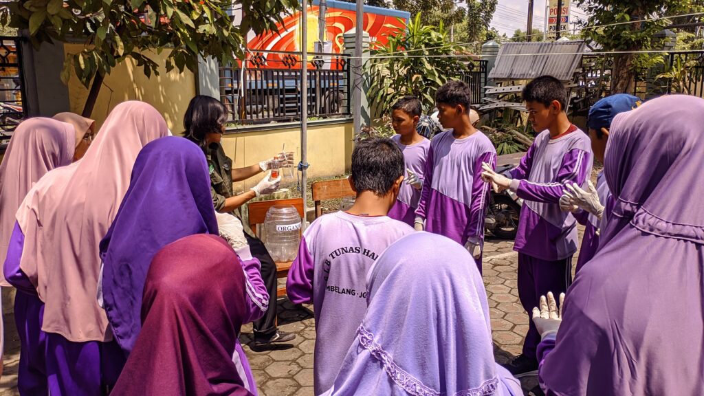 Puncak kegiatan berlangsung pada hari ketiga dengan waste assessment, di mana siswa, guru, dan tim Peer Educator bersama-sama melakukan pemilahan sampah yang ada di lingkungan sekolah. Dari hasil pemilahan, berhasil dikumpulkan 2 kilogram sampah anorganik dan 3 kilogram sampah organik. Sampah organik yang terdiri dari sisa makanan dan dedaunan dimasukkan ke dalam wadah kompos yang tersedia di sekolah untuk diolah lebih lanjut, sementara sampah anorganik seperti botol dan gelas plastik dipisahkan ke dalam wadah berbeda untuk disalurkan ke bank sampah. Melalui aktivitas ini, siswa tidak hanya mendapatkan teori tetapi juga praktik langsung tentang bagaimana mereka dapat mengelola sampah dengan benar di sekolah maupun di rumah.