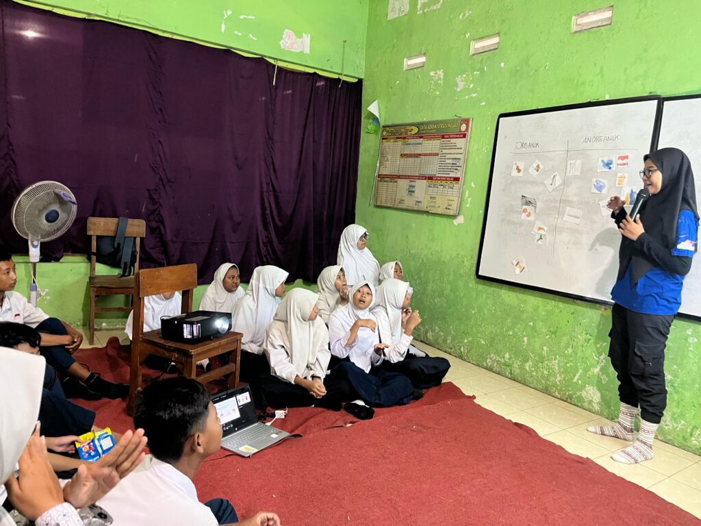 Hari kedua berfokus pada pengenalan jenis-jenis sampah dan cara memilahnya dengan benar. Tim Peer Educator menjelaskan perbedaan antara sampah organik, anorganik, dan B3 (Bahan Berbahaya dan Beracun) dengan menggunakan alat bantu gambar dan permainan edukatif. Siswa tampak sangat antusias dalam sesi ini, terutama ketika mereka diminta untuk menempelkan gambar sampah sesuai dengan kategorinya. Aktivitas ini membantu mereka lebih memahami klasifikasi sampah dan cara pemilahannya dengan cara yang menyenangkan. Hal menarik lainnya adalah saat jam istirahat, beberapa siswa tampak mengulang kembali edukasi yang telah diberikan sebelumnya. Hal ini menunjukkan bahwa metode pembelajaran yang diterapkan tidak hanya menarik tetapi juga mudah diingat dan dipahami oleh para siswa.